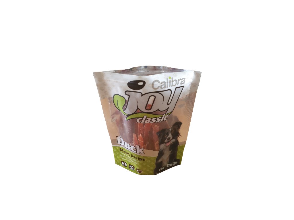 Masový pamlsek Calibra Joy pro psy - proužky z kachního masa s vysokým obsahem proteinů a nízkým obsahem tuku.