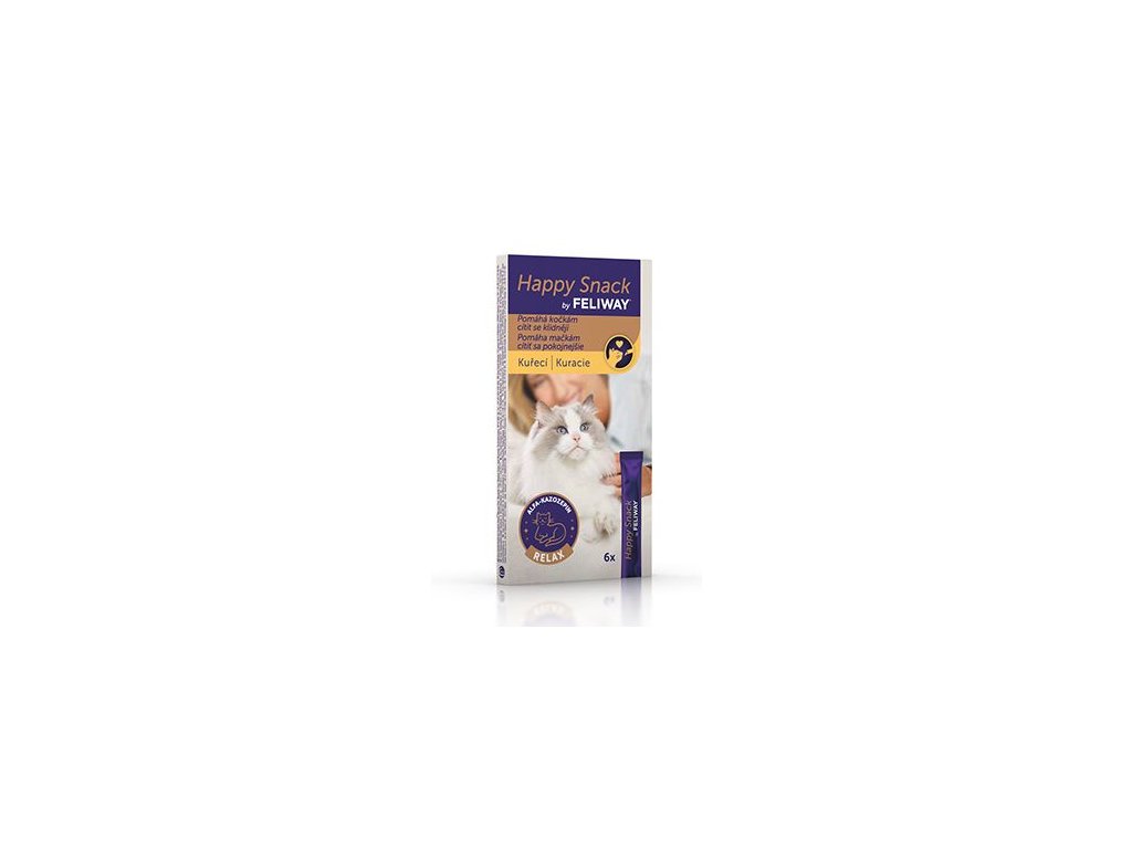 Lehká a krémová pochoutka, kterou si všechny kočky zamilují. Happy Snack by FELIWAY obsahuje alfa-kazozepin, přírodní mléčný protein, který má uklidňující účinek, a proto může být tento pamlsek pro vaši kočku obzvláště užitečný ve stresových situacích.